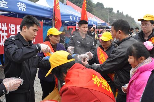 在开展“让温暖一起回家”送温暖活动中,岑溪市公安局民警和爱心志愿者们共接待、引导了近5万多辆返乡铁骑大军,并安全护送他们离开岑溪市辖区走向返乡团圆之路。