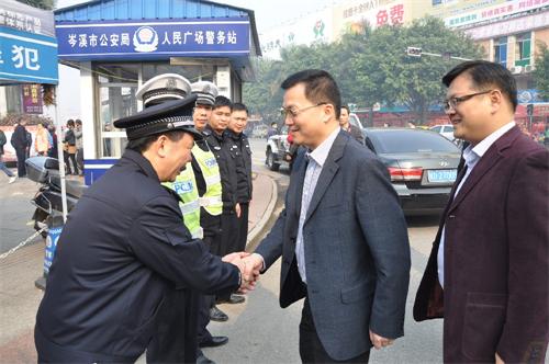 在岑溪市公安局广场警务站,岑溪市领导梁达斌、梁兵、李国在详细了解了警务站民警的值班备勤和在除夕、春节期间的处警、救助服务群众等有关情况后,对警务站民警在除夕和春节期间认真做好值班备勤、维护广场周边治安秩序和救助服务群众工作所作出的努力和付出表示感谢,并为警务站全体民警送上新年的祝福和良好的祝愿,要求警务站民警要在全力维护好广场周边及广场文化娱乐活动的治安秩序、积极做好服务群众各项工作的同时,要按照要求积极做好处警工作,努力为市民群众欢度春节创造良好的治安环境而作出贡献。