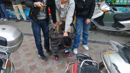2014年2月10日12时许,岑溪市公安局巡防大队巡逻组正常巡逻至旧岑溪饭店门口前面人行道时,一名中年男子手拿镊子正在向一名中年妇女的裤袋伸去进行扒窃,不料被正在巡逻的巡防队员发现,于是拔腿就跑,巡防队员快速上前将其抓获。