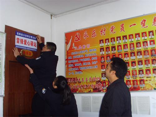 苍梧县公安局交警大队民警在永乐村新设立交警“雷锋爱心驿站”