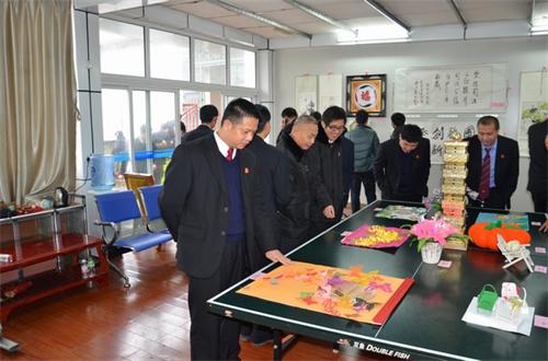 蒙山法院院长在展厅参观干警作品