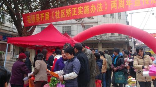 3月6日,苍梧县司法局在旺甫镇供销旁开展《社区矫正实施办法》颁布实施两周年的庆典活动及普法活动。通过宣传帮助广大群众了解实施社区矫正的意义和目的,提升社区矫正工作的知晓率和社会影响,也进一步提高群众的法律意识、维权意识。