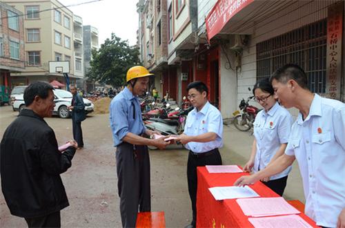苍梧法院干警向群众发放征求意见表