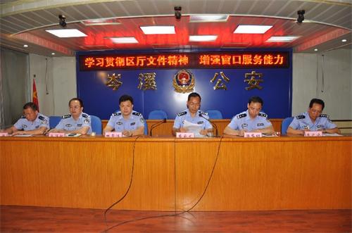 4月18日下午,岑溪市公安局在六楼会议室召开以“学习贯彻区厅精神 增强窗口服务能力”为内容的户口整顿工作会议,对全市公安机关开展户政服务整顿工作进行了全面部署。