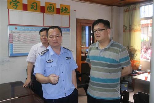 岑溪市副市长、公安局长梁兵(右一)到基层派出所暗访民警上班情况