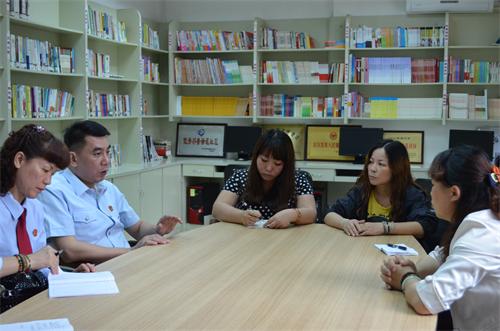 富安社区公共服务中心社区党支书、主任伍敏华对金副院长一行人的到来表示欢迎,并就该社区居民情况作出详细介绍。伍主任表示,富安社区管辖枣冲安置小区、廉租房小区等2300多户、8000多人,80%的居住人口是来自梧州市“三冲”地质灾害整治的搬迁户,设立“法官社区服务工作室”、深化“无诉社区”创建活动对加强和创新社区的社会管理工作具有重要的实践意义。