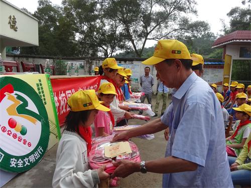 5月21日上午,藤县退休老同志为该县象棋镇新芹村贫困和留守儿童免费赠送精美书包和学习用品。一年一度的"六一"儿童节临近,藤县关心下一代工作委员会及时组织退休老同志深入边远山区象棋镇新芹村小学,开展慰问贫困和留守儿童活动,让他们真切感受到社会的关爰和温暖。