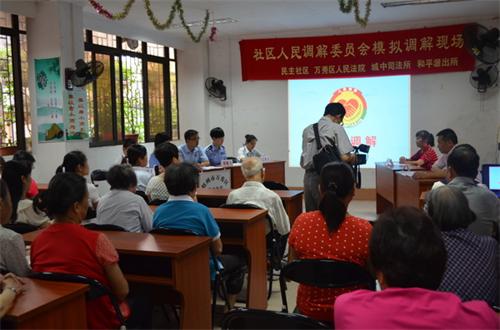 5月15日,梧州市万秀区人民法院、民主社区、城中司法所、和平派出所等单位模拟了一场社区调解活动,给居民上了一堂生动的法制调解课。