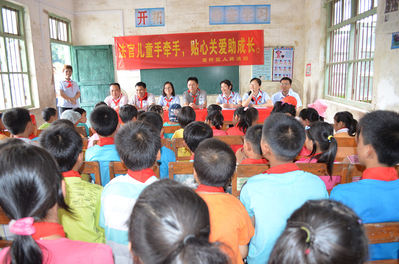 大坡镇大燕村是大坡镇最偏远的一个村,距离龙圩区政府所在地45公里。由于地处偏远,教学资源不足,教学条件差,大燕村小学只有一、二、三、五年级共56名学生。为了鼓励学生们自立自强,努力学习,特别是让他们从小树立安全意识和法制意识,龙圩区法院经与大坡镇妇联、教组、村委联系,决定把这所小学作为该院开展妇女儿童维权岗活动的重点法制宣传教育和帮扶对象,得到了他们的一致好评和欢迎。