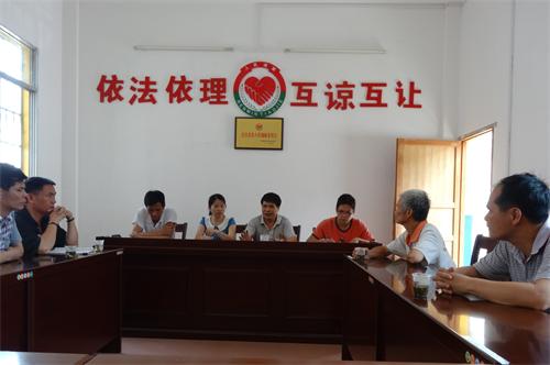 藤县司法局党组书记叶卫杰在岭景司法所调处一起农田损坏纠纷