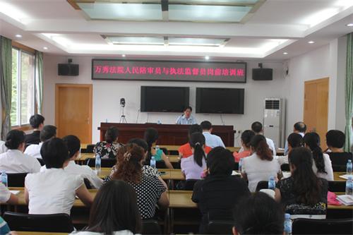 为进一步落实人民陪审员制度,提高人民陪审员的政治素质和业务能力,充分发挥人民陪审员在审判工作中的作用,6月20日,该院举办了人民陪审员学习培训班,并组织立案庭、刑庭、民一庭资深法官为33名人民陪审员授课。在培训班上,万秀法院领导和人民陪审员一起对行政区划调整后审判执行工作面临的严峻形势、出现的新问题进行了分析研判,要求人民陪审员发挥好调解员、监督员、宣传员作用,遵守审判制度、加强学习、宣传法律、廉洁自律,充当好人民群众和法院之间相互沟通的桥梁。