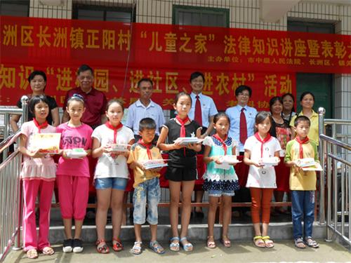 近年来,为了减少儿童伤害案件,关爱儿童身心健康,长洲法院先后开展了“送法进校园”、“关爱留守儿童”等一系列活动。并成立了一支15人的“普法小分队”,“进校园、进社区、进农村”宣传法律知识,关爱儿童成长,及时帮助处理儿童受伤害事件,为儿童健康成长撑起了一把保护伞。