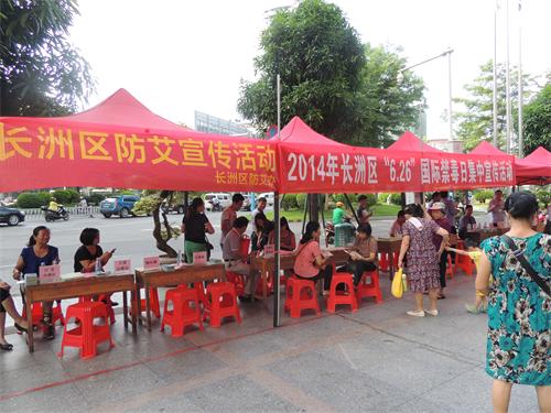 2014年6月26日,长洲区在梦之岛时代广场门前,开展了2014年全民禁毒宣传月集中宣传活动。