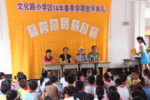 炎炎夏日,暑期将至。为切实做好暑期学生交通安全管理工作,确保学生放假期间道路交通安全,7月4日下午,梧州交警万秀大队宣传民警深入辖区警民共建单位之一的文化路小学,为250多名师生上了“暑期假前的一堂交通安全课”, 积极配合学校和交警部门做好学生的交通安全宣传教育,让孩子们度过一个安全、快乐的假期。