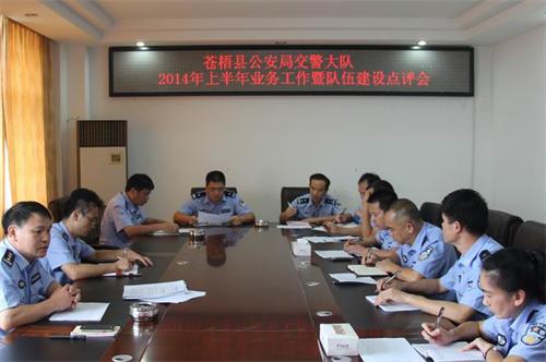 7月18日下午,苍梧交警大队召开2014年上半年业务工作暨队伍建设点评会及绩效工作推进会,部署下半年各项工作,确保完成上级下达的各项工作任务。县公安局政委杨创新参加了会议并作了重要讲话。