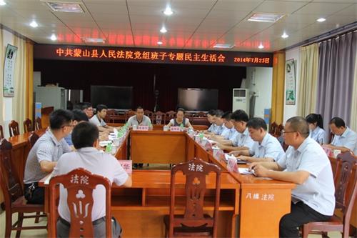 按照党的群众路线教育实践活动第二阶段工作安排,7月23日,蒙山县人民法院党组班子召开党的群众路线教育实践活动专题民主生活会。梧州市第四督导组领导郭福民同志,蒙山县委常委、组织部部长潘一清同志,县第九督导组组长、县政协副主席吴科同志到会指导,蒙山法院党组书记、院长张勇主持会议。