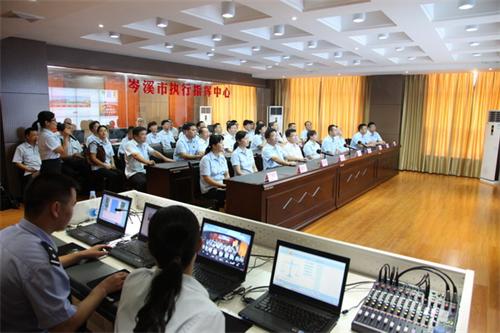 与会人员观摩岑溪法院执行指挥中心