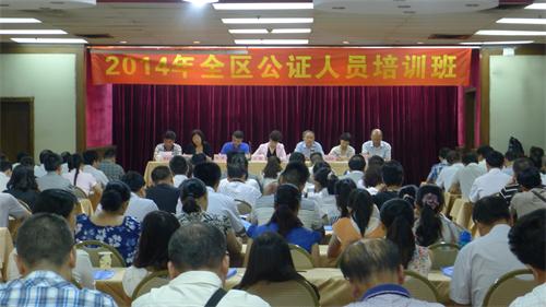 为了提高公证员业务素质和执业技能,我市局组织了全市五家公证机构的公证员12人参加了广西公证协会于2014年8月9—13日在桂林市举办全区公证员培训班的培训学习。