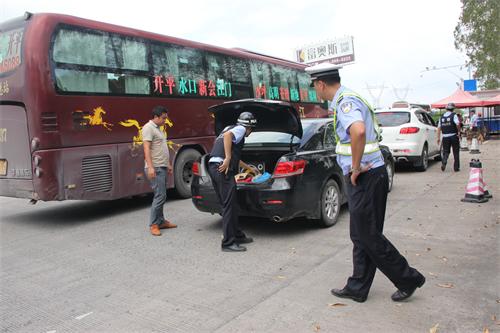 当前,正值2014年中国—东盟博览会、中国—东盟商务与投资峰会和南宁国际民歌节召开之际,大型活动期间面临暴恐的风险也急剧增大。为维护社会治安稳定,梧州支警高速管理二大队在易大队长的组织下,抽调精干民警配合对大坡省际卡口援勤守卡,对从广东进入我市辖区的长途客车、小型轿车、微型面包车加强重点检查,配合治安检查部门做好拦截车辆并引导到指定地点接受检查的工作,为治安检查部门快速有序检查打下良好的基础,形成反恐维稳工作的强大合力。
