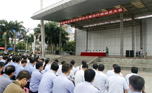 9月19日上午,岑溪市委、市政府在市人民广场召开全市社会治安综合大整治行动动员大会,市四家班子领导、全市科级以上领导干部、全体政法干警以及市直各单位干部职工共2000多人参加了动员会。