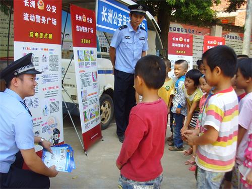 “接到亲人‘出事’、返还购置税和出生儿补贴这类的电话时,应进行全面核查,不要轻信”;“家中尽量少放现金,贵重物品建议你们存放在银行保险箱。”9月24日上午9时,梧州市长洲区公安局长洲派出所,所长黎江、社区民警蒙锦云、莫洲开着印有“流动警务广场”字样的敞篷警务车,深入辖区的乡村田间地头,学校、企业等单位,零距离向群众传授家居防盗、防电信诈骗、防抢劫抢夺、消防知识,为群众办理二代身份证,调解矛盾纠纷、收集治安信息、群众对派出所警务的意见建议等。