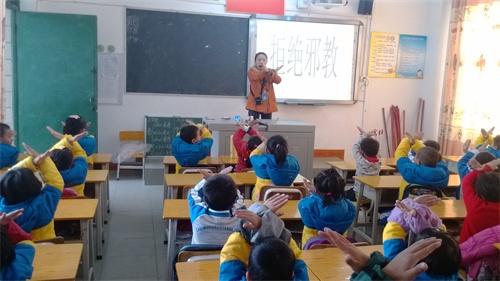抓住两点的内在联系,我校在对学生进行反邪教教育过程中力求达到在校教育效果能反馈到家庭甚至社会中去的目标。在对教职工队伍组织进行了反邪教学习后,以班级中队为单位,中队辅导员为指导,主题班会的形式对学生开展教育警示活动。各中队根据不同年龄阶段学生的特点,设计不同的环节让学生了解并认识“什么是邪教”、“邪教的危害”和“家庭拒绝邪教”等问题。