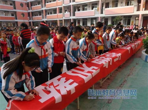 11月25日,新兴二路小学在操场上举行了师生反邪教签名、反邪教承诺活动。在活动中,师生纷纷来到升旗台前的红布上签上自己的名字,并举手承诺,反对邪教,远离邪教,崇尚科学。