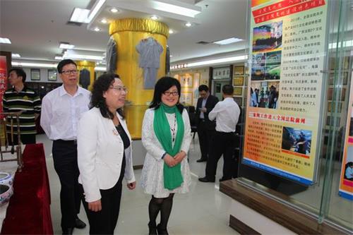 (许淑清代表(右)观看梧州中院工作亮点展版)
