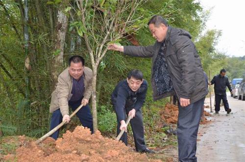 3月6日,蒙山县人民法院副院长、驻村工作组组长秦永炎与工作组成员一起到挂点联系村文圩镇大龙村参加“生态乡村,村屯绿化”植树活动,植树现场他汗流浃背却乐在其中。