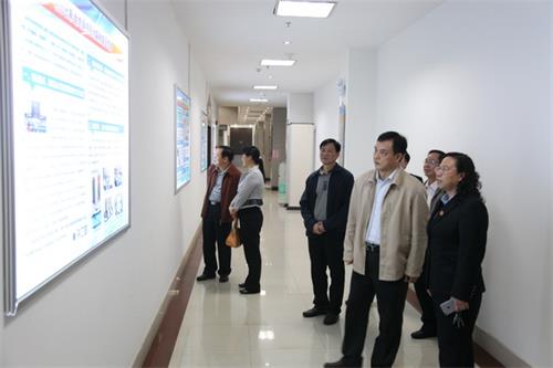 (吴汉华(右二)一行参观法院工作亮点展示屏)