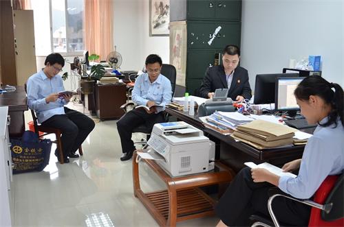 为大力宣传邹碧华同志先进事迹,进一步学习邹碧华精神,3月30日下午,在龙圩区人民法院的四楼文化室内,举行了邹碧华同志主编的《要件审判九步法》及《法庭上的心理学》书籍发放活动,整个活动简洁而庄重。全院干警在院长张勇同志的带领下,通过邹碧华生前著作的审判经验传承,迅速掀起学习邹碧华同志先进事迹的热潮。