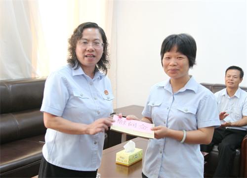 (莫澄真院长给黄爱琴法官送上慰问金)