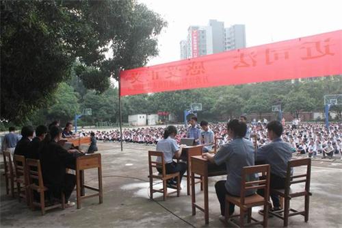 5月4日“五•四”青年节当天,梧州市万秀区人民法院团支部青年法官及少年审判庭的法官们走进梧州市第四中学,和同学们一起通过模拟法庭、普法问答等形式,开展“接近司法 感受公正”之法制宣传进校园活动,并和该校逾千名青年学生一起也以这种特别的方式,度过了一个有意义的青年节。