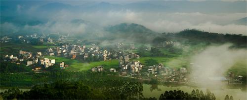 (生态环境良好的蒙山农村晨景)