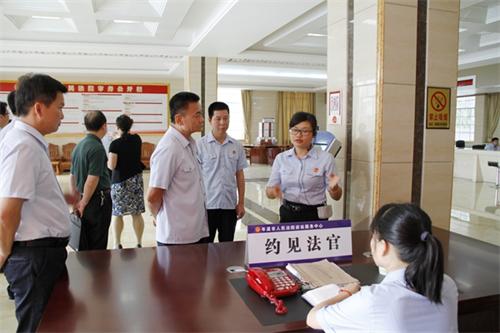 蒋浦副院长深入到岑溪法院诉讼服务中心、执行指挥中心和糯垌人民法庭了解工作开展情况,观看了法院工作剪影视频,重点了解立案登记制改革实施情况、审判执行工作、队伍建设和人民法庭建设情况。蒋副院长一边实地检查,一边听取有关工作情况汇报,对岑溪法院各项工作所取得的成绩给予充分肯定。