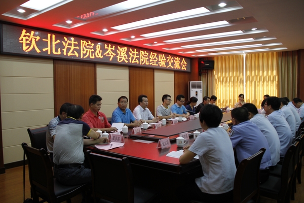 随后,双方举行了经验交流会。两家法院分别介绍了各自法院的基本情况、工作亮点和经验,双方相关领域的负责人还就审判管理、少年审判、执行三个方面的工作进行深入讨论。钦北法院副院长冯怀泳高度评价了岑溪法院作为“全国优秀法院”在审判管理、少年审判、执行等方面工作所取得的成绩,并表示会将借鉴“岑溪好经验”更好地服务地区发展。