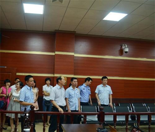 在岑溪法院党组副书记覃文、副院长梁德强引领下,调研组先后参观了法院文化室、科技法庭、诉讼服务中心、执行指挥中心等场所,并观看了岑溪法院工作剪影和执行指挥工作视频。在参观过程中,玉林中院陈均副院长对科技法庭及当事人法律资料庭审录音录像查阅室的设置作出了高度评价,称赞科技法庭的设计结构充分体现了岑溪法院的文化精神,当事人法律资料庭审录音录像查阅室的设置便民为民,充分体现了阳关司法和司法为民的精神,非常值得玉林两级法院借鉴学习。