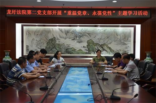 2015年6月11日下午,龙圩法院第二党支部在该院会议室内开展“重温党章、永葆党性”主题学习活动,加强党员的党章党规意识,要求党员干部结合自身工作实际改进工作作风、密切联系群众。