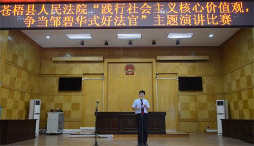 司法为民,在于牢记宗旨,学习榜样,甘于奉献。2015年6月15日,苍梧法院开展“践行社会主义核心价值观,争当邹碧华式好法官”主题演讲选拔赛,在掀起学习英雄高潮的同时,激励全院干警沿着“燃灯者”开拓的路不断前进。