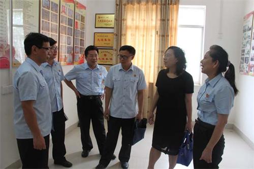 6月26日,在2015年度梧州市法院人民法庭工作会议结束后,市中院莫澄真院长、邓昌言副院长一行,对潭东法庭文化建设、信息化建设等进行调研。