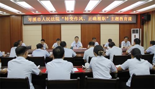 7月3日,岑溪法院党组书记、院长张光霖为全体中层以上领导上了一堂“转变作风,正确履职”主题教育课。