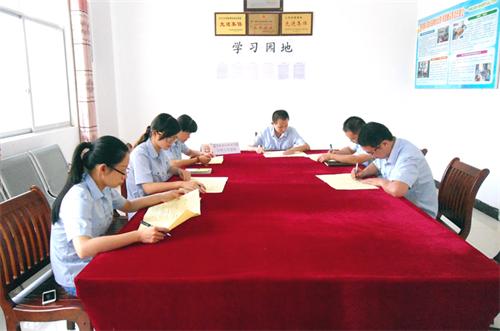 (会议上岭脚法庭干警们在认真做笔记)