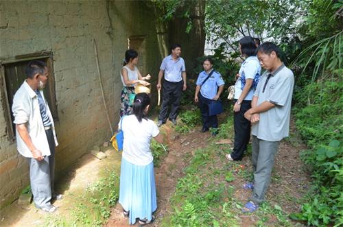 下午3点,罗副院长等一行到达现场,邀请当地村民小组长及族老参与调解工作。在现场,罗副院长等人用锄头、木棍拨开丛生的杂草的察看塌方情况,并用卷尺认真丈量排水沟,一番勘察下来已经是汗流浃背了。