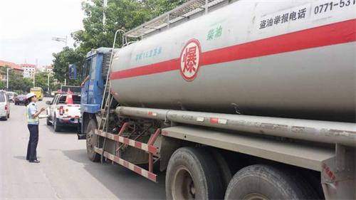 天津港爆炸事故生后,交警长洲大队领导及民警高度重视,立即开展对危化车辆严格检查,履行道路交通安全职责。近日大队派出民警顶着烈日在辖区道路上重点检查危化车辆,检查内容有运输危化品营运证和出入仓库运输单是否合格,是否有资格营运,以及车辆状况安全等一系列安全措施是否达到安全标准,如发现其中有不安全因素立即责承运输驾驶员停止运输,并通知有关部门进行处理。通过现时的检查,发现有些车辆机件部分存在安全隐患,民警要求驾驶员进行原地修复才继续运输,以确保道路交通安全。同时,民警还要求车主或驾驶员在每辆危化品车明显位置张贴监督举报电话,通过群众加强对安全驾驶、文明驾驶的监督教育。