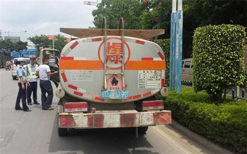 天津港爆炸事故生后,长洲交警大队立即开展对危化车辆严格检查,履行道路交通安全职责。民警顶着烈日在辖区道路上重点检查危化车辆,检查内容有运输危化品营运证和出入仓库运输单是否合格,是否有资格营运,以及车辆状况安全等一系列安全措施是否达到安全标准,如发现其中有不安全因素立即责承运输驾驶员停止运输,并通知有关部门进行处理。通过现时的检查,发现有些车辆机件部分存在安全隐患,民警要求驾驶员进行原地修复才继续运输,以确保道路交通安全。同时,民警还要求车主或驾驶员在每辆危化品车明显位置张贴监督举报电话,通过群众加强对安全驾驶、文明驾驶的监督教育。据统计,本月行动共检查危化品车辆60辆,查获违法违规车辆16辆,对36名驾驶员进行了现场处罚、批评教育。