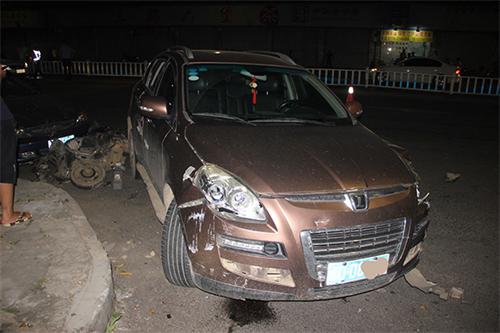 2015年8月12日晚上22时许,我市西堤一路梧州茶厂对出路段发生一起致人受伤的交通事故。万秀交警大队民警到现场处警时,发现肇事车辆为一辆桂D牌号的纳智杰牌越野车,驾驶人不在现场,事故路段中心隔护栏被撞烂约30米,事故造成包括肇事越野车在内的4辆车辆损坏,其中一辆车位助力车,助力车驾驶人受伤,并无生命危险。