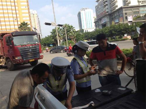 除了开展专项整治行动,民警多管齐下深入泥头车运输企业,认真仔细检查企业交通运输资质和交通安全管理制度,向企业管理人员开展交通安全法律法规宣传,签署交通运输安全承诺书,并在车辆醒目位置张贴监督电话,方便市民对车辆进行监督。
