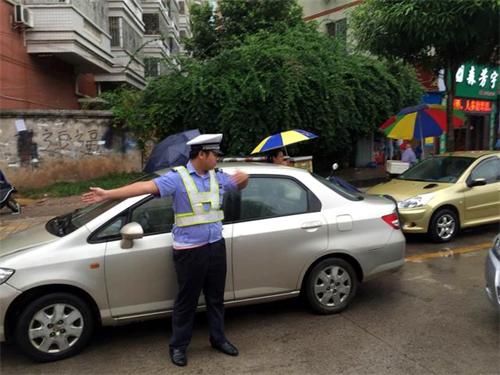 早在开学前夕,长洲大队专门到辖区各个中小学校周围以及各条道路进行了实地勘察,在学生上下学高峰设立护卫岗,确保学生过马路安全。同时为了方便接送学生车辆的停放,大队根据实际情况对有条件的学校,大队设立临时停车位,指挥车辆规范停车。给广大师生提供安静的教学环境和良好的道路交通秩序。在新兴二路小学门口,民警冒雨在校门口设立指挥岗,指挥家长车辆有序接送,避免在校门口出现拥堵状况;在梧州高中门口,民警指挥车辆缓速通行,同时引导学生有序通过马路,对于骑车的学生民警引导其按车道行驶,以免引起交通混乱;在大塘小学门口,民警引导学生按交通信号灯有序通过马路,禁止学生无序乱穿马路,禁止家长接送车辆在路边随意上下车。在新兴小学校门口,民警清理周边商户和小贩的占道经营,保障道路通畅,同时,劝导家长不要在校门口中间等待,以免造成校门口秩序的混乱;民警在指挥的间隙还结合实际向学生和家长宣传交通法律法规,劝导学生和家长利用公共交通出行,不要乘坐“黑车”。