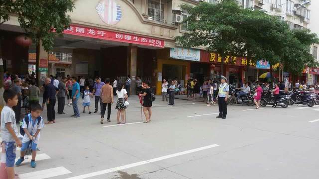 (龙圩交警维护校园周边环境)