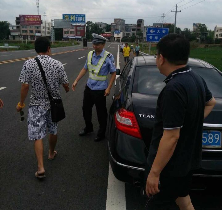 9月4日早上,市公安局交警支队高速四大队黎副大队长带队在辖区巡逻,行至新庆路段时发现一辆黑色小轿车停在紧急车道上,经上前询问得知司机突然感到身体不适不得已靠边休息,黎副大队长当机立断,为该司机代驾驶出最近的高速出口。